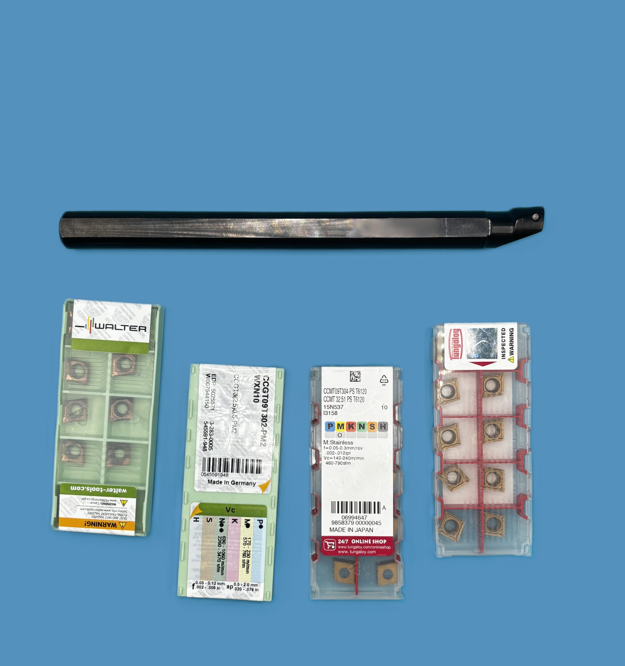 2doboz=20darab CCGT09T302PM2 WXN10 Rozsdamentes acél és alumínium megmunkálására. Sarokrádiusz 0,2mm 2doboz=20darab CCMT09T304PS T6120 Acél és rozsdamentes acél megmunkálására. Sarokrádiusz 0,4mm